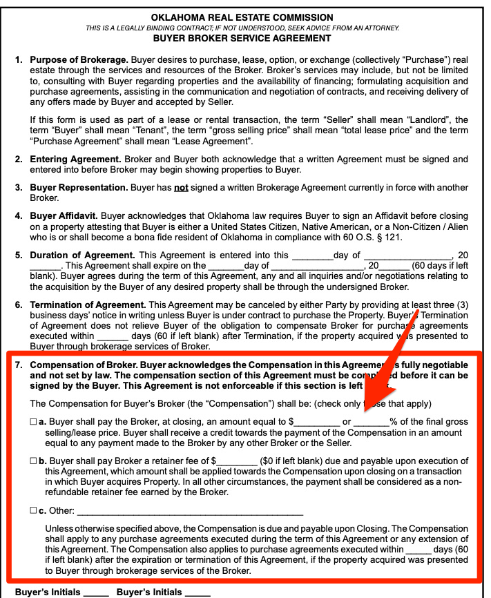 Here’s what a buyer’s broker service agreement looks like in Oklahoma.