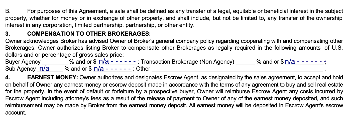 For example, in this previous listing agreement in Charleston, S.C., sellers and their agents agreed on a percentage as "compensation to other brokerages," which would appear in MLS listings (this practice will no longer be allowed under the new rules).