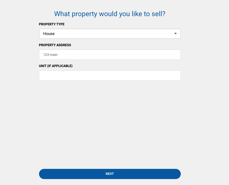 Select your property type from the dropdown and enter basic listing details, like the address. This helps Prevu route your request to the right local agent.