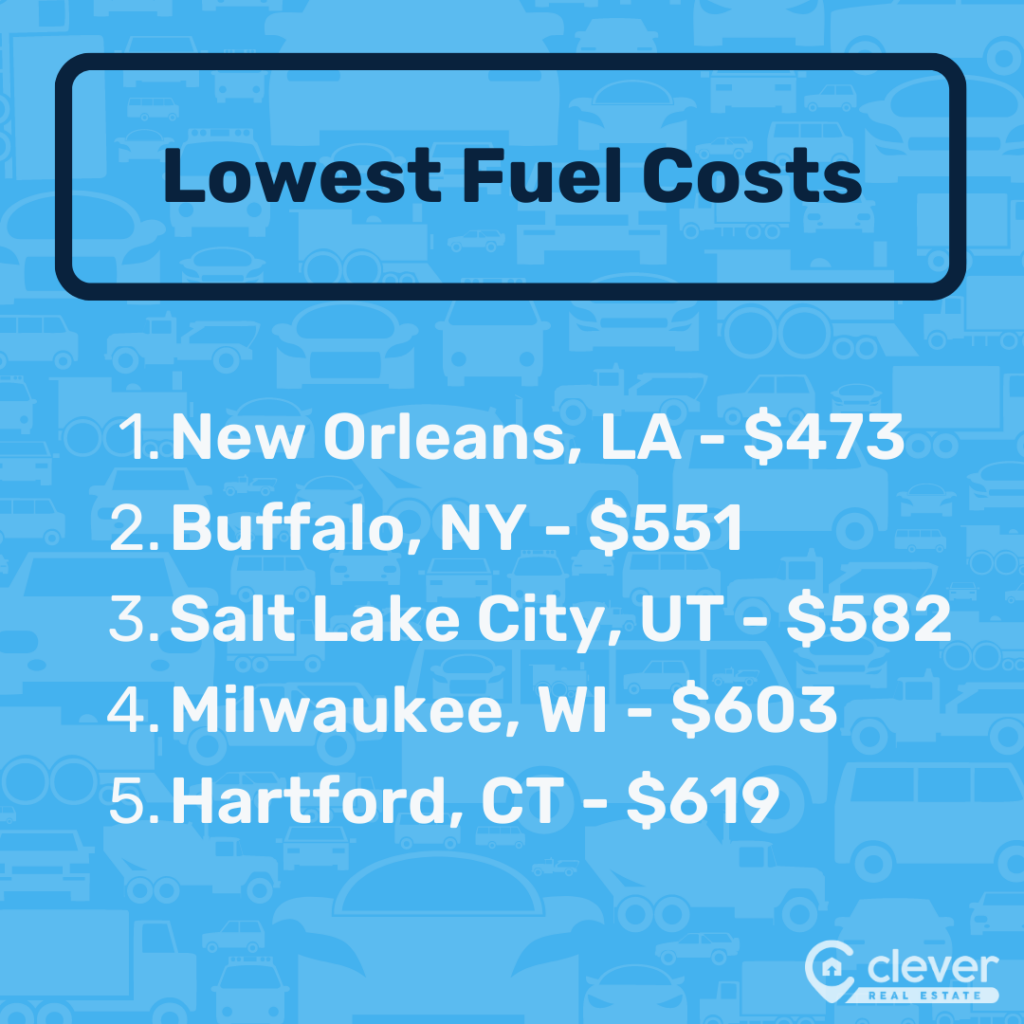 Overall, gas prices have fallen from 2022. Last year, Salt Lake City's annual cost of fuel was $648. This year, it dropped to $582. Despite not making the top 15 best cities for commuters, New Orleans has the lowest average cost of fuel among all 50 metro areas at $3.36 per gallon. Seattle has the highest at $5.10 per gallon.