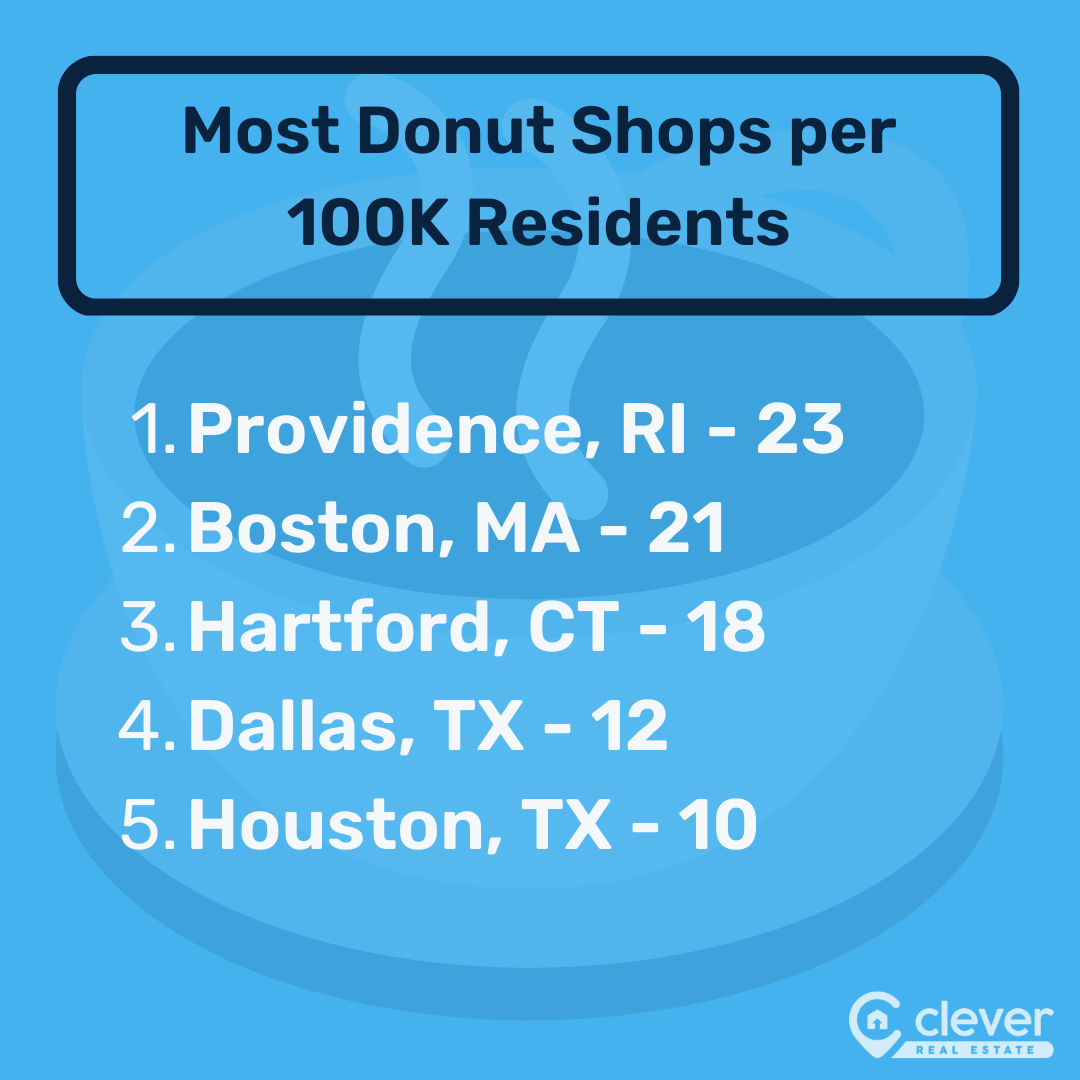| 🍩 Do or Do-nut You gotta have somethin' to pair with your coffee, and Hartford's got you covered. It has 17.7 donut shops per 100,000 residents — 3x as many donut shops as the average city (5.5). |