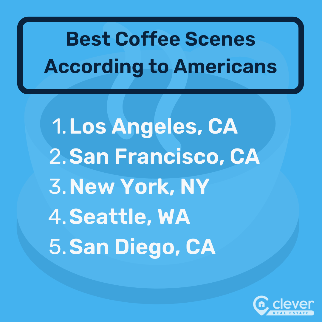 Clever also surveyed 1,000 Americans on their personal top five coffee scenes around the country in December 2022. These responses did not factor into our overall best coffee city rankings.