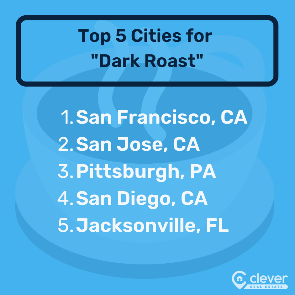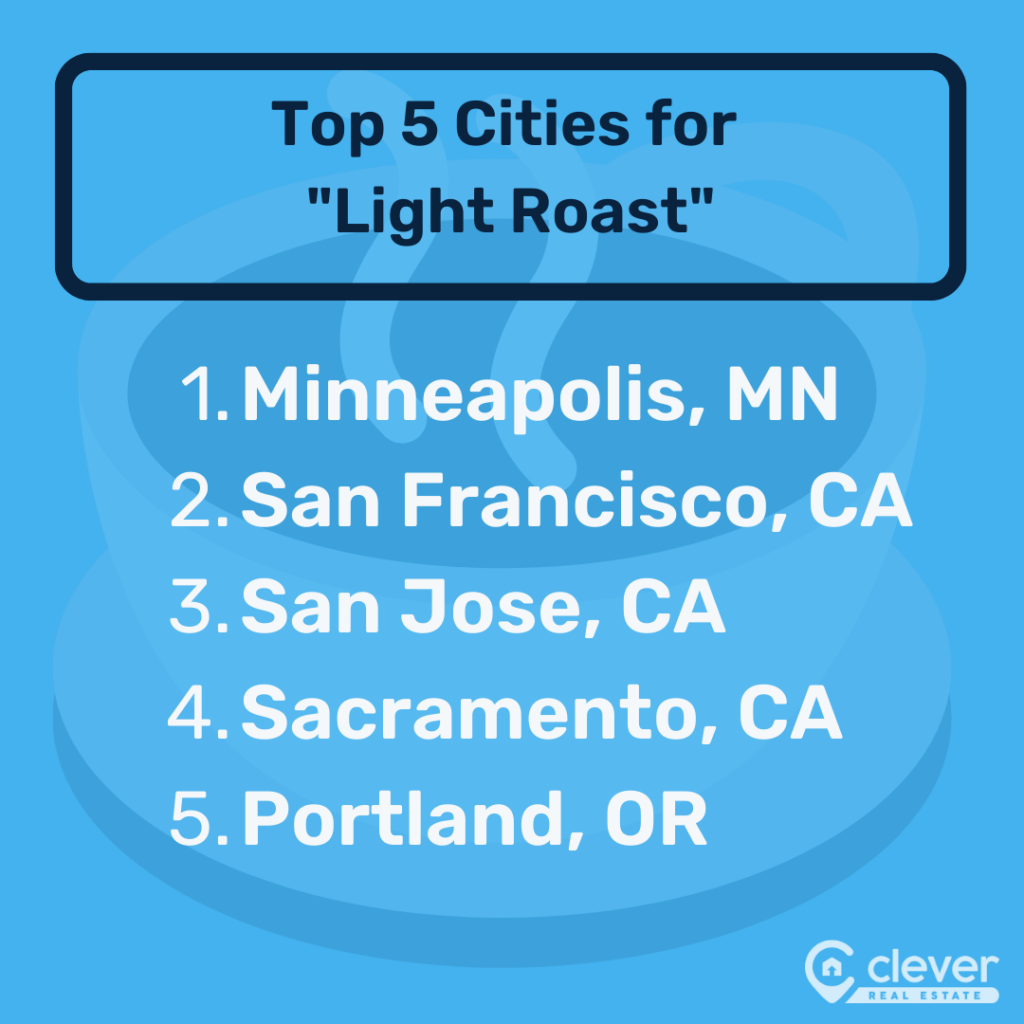 • Minneapolis has the most searches for light roast coffee, while Buffalo, New York, and San Francisco search the most for medium roast and dark roast, respectively.👇