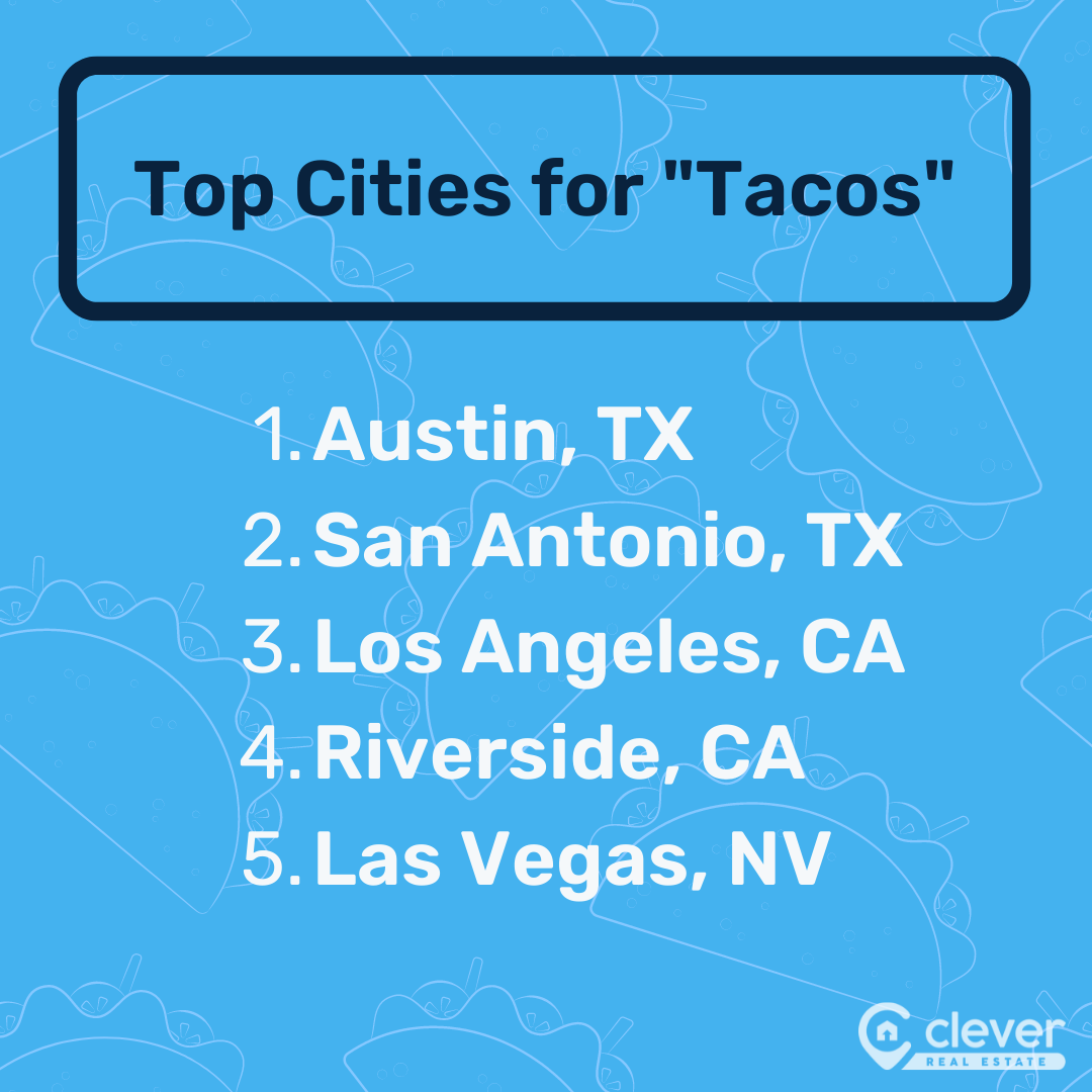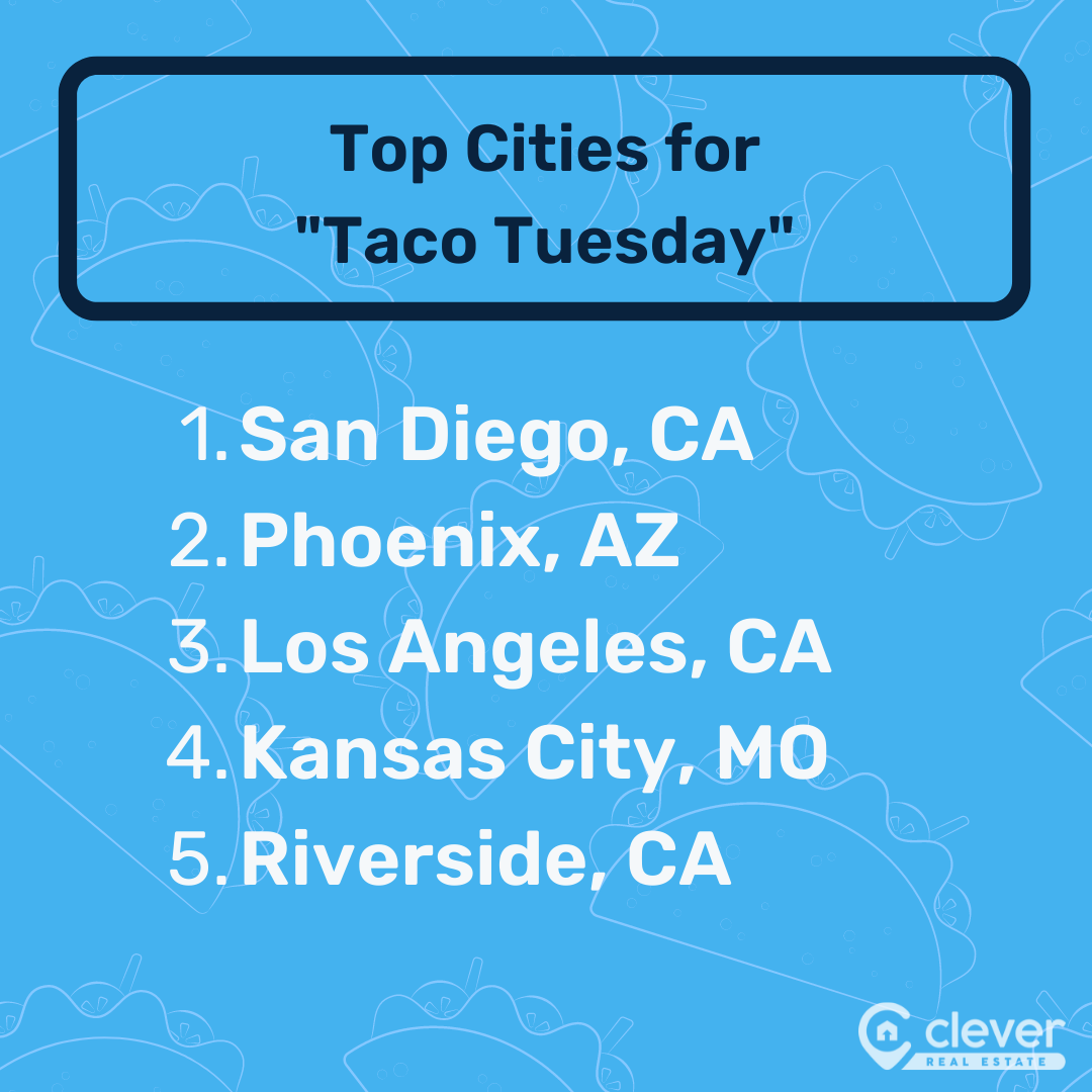 The best cities for Taco Tuesday, based on Google Trends data that measures interest, are:
