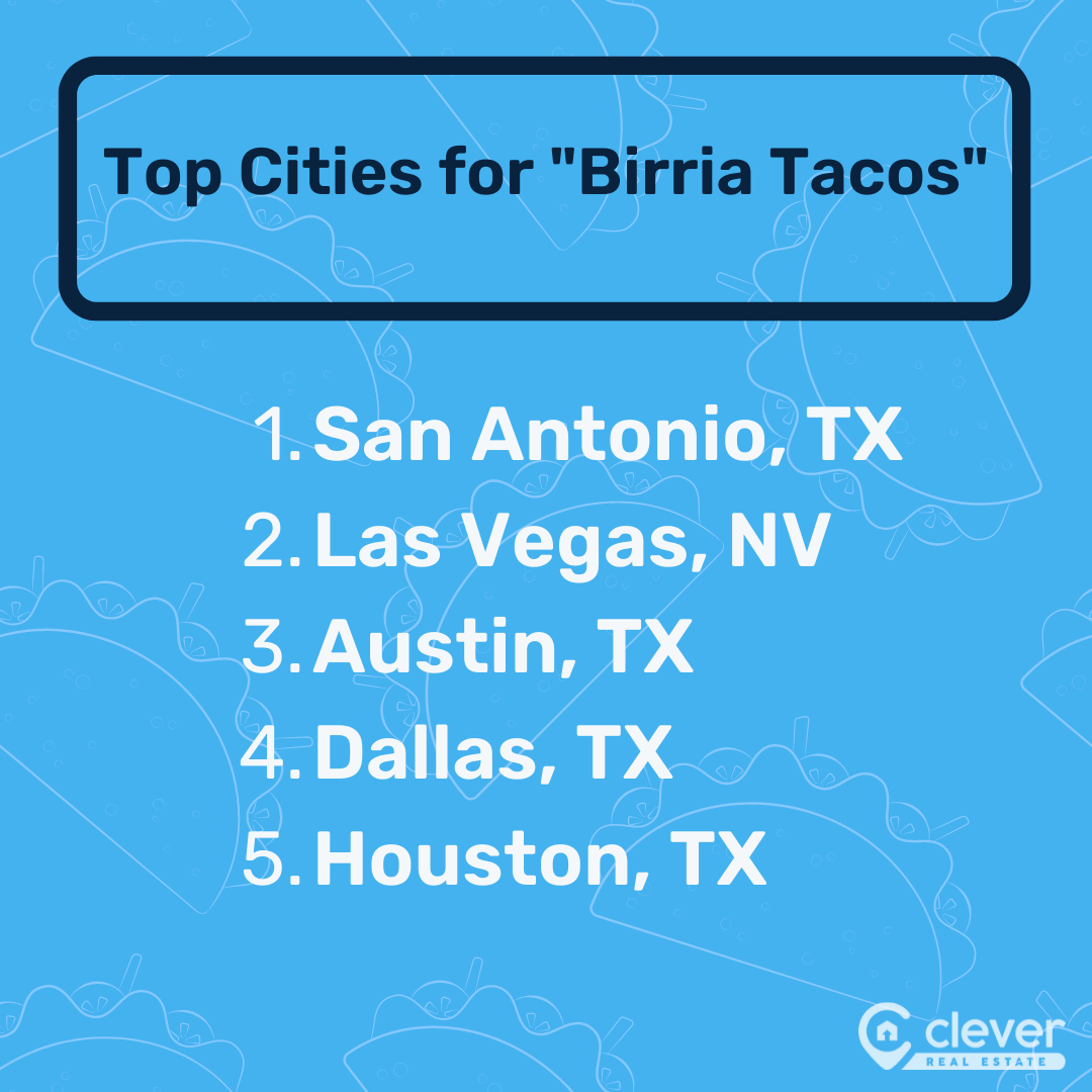 | 😋 Come for Los Spurs, Stay for the Birria San Antonio ranked No. 1 for birria tacos and quesadillas in terms of residents' passions for the two dishes. Birria tacos are a Mexican classic but have really taken off in recent years in the U.S. |