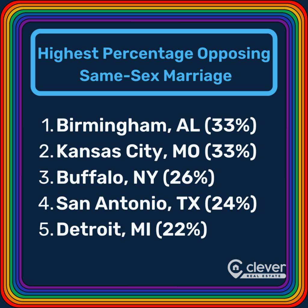 - Providence, Rhode Island, and Nashville, Tennessee, residents are the most supportive of anti-discrimination laws. Just 9% of residents oppose them. Kansas City, Missouri, and Birmingham, Alabama, have the highest opposition rate at 33%.👇