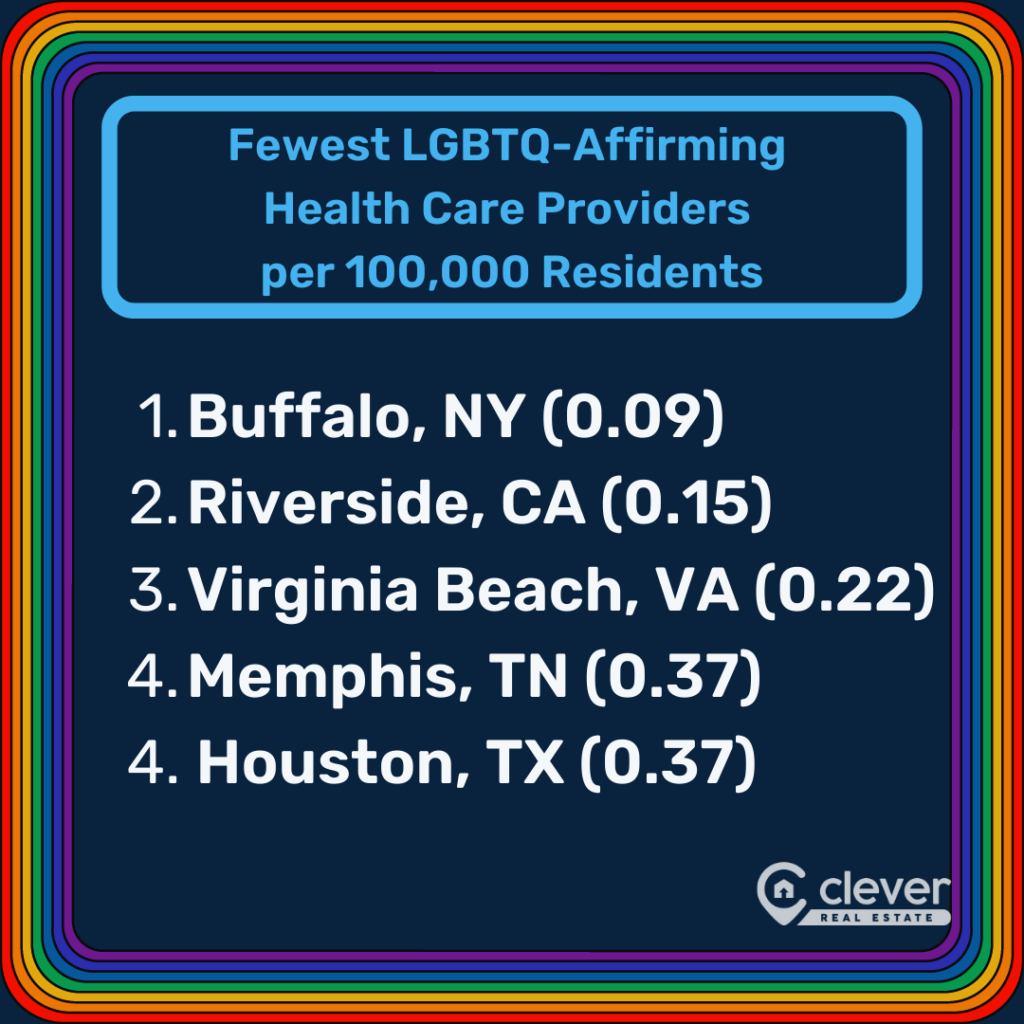 - Raleigh, North Carolina, has the highest number of LGBTQ-affirming health care providers per capita (5.73), while Buffalo, New York, has the lowest at just 0.09 providers per capita.👇